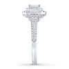 Dazzling rows of round diamonds surround a spectacular radiant-cut diamond center to create the main attraction in this stunning bridal. The 14K white gold band of the engagement ring and matching wedding ring gleam with twinkling diamonds, bringing the total diamond weight of the bridal set to 1 1/8 carats.