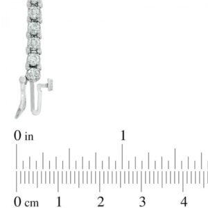 Crafted in cool 10K white gold, this stunning bracelet features an interconnected square frame with sparkling round diamonds set into each prong. The diamonds weigh a total of 4 carats and are polished for a mesmerizing sparkle. This unique bracelet measures 7.0 inches long and secures with a tongue-and-groove clasp.
