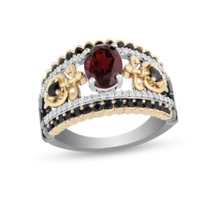 Crafted in sterling silver and warm 10K gold, this vibrant ring features royal red garnets, brilliant blue sapphires, and a polished yellow gold ribbon. Polished to a dazzling shine, this silver ring is sure to be admired. This ring is only available in size 7. Sterling silver rings cannot be resized after purchase.